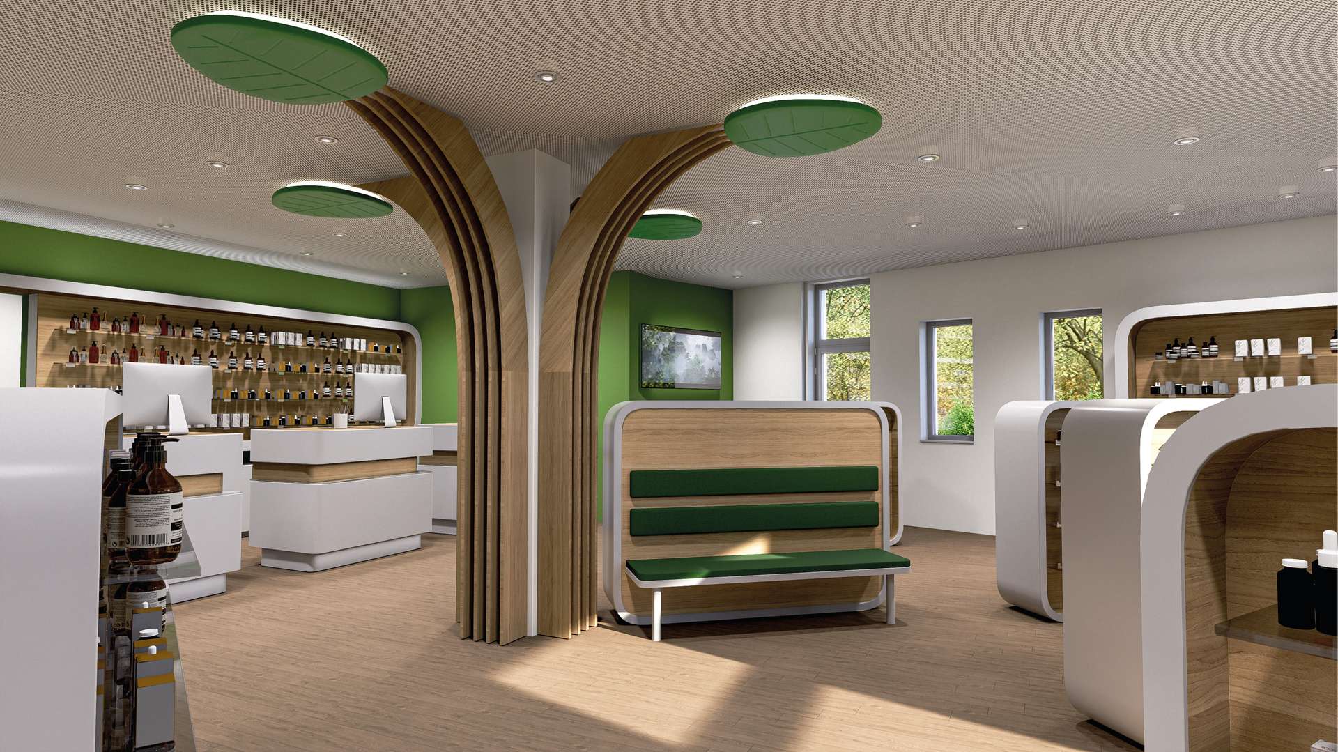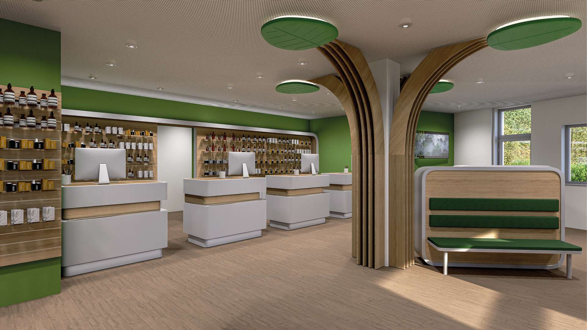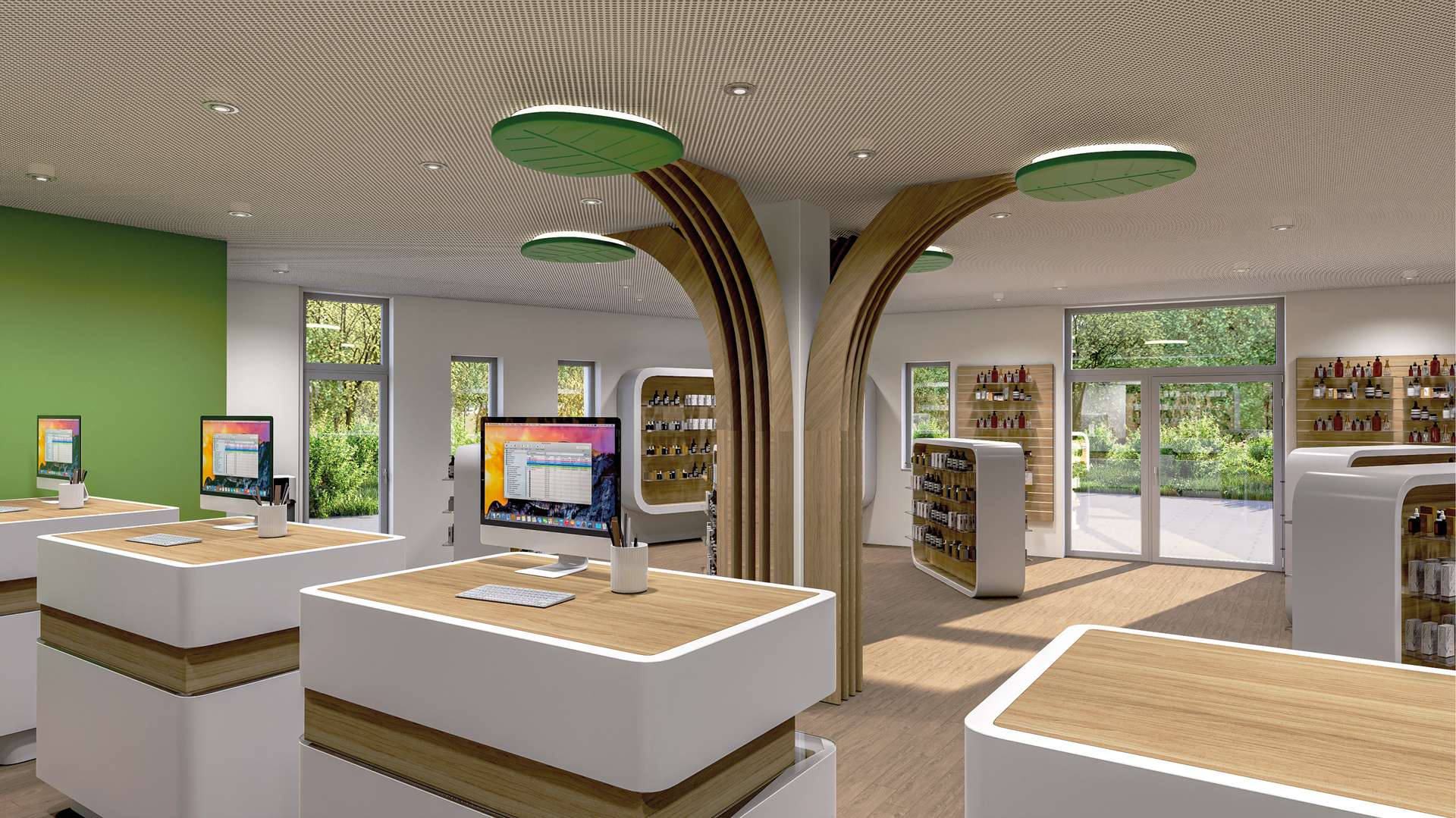 Die Gewerbeflächen sind Teil eines architektonisch klar gestalteten Neubaus und bieten damit die Möglichkeit, moderne Arbeits- und Versorgungsräume nach aktuellen Standards zu realisieren.