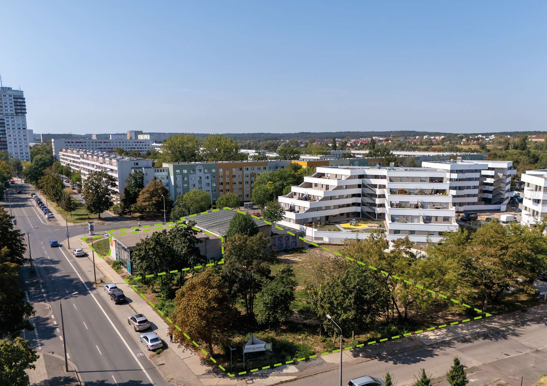 Das Grundstück befindet sich unmittelbar neben dem innovativen Neubau-Quartier "Wohncampus", in dem aktuell 352 neue Wohnungen mit einem außergewöhnlichen städtebaulichen Konzept entstehen. Mehrere Bauabschnitte sind bereits fertiggestellt.
