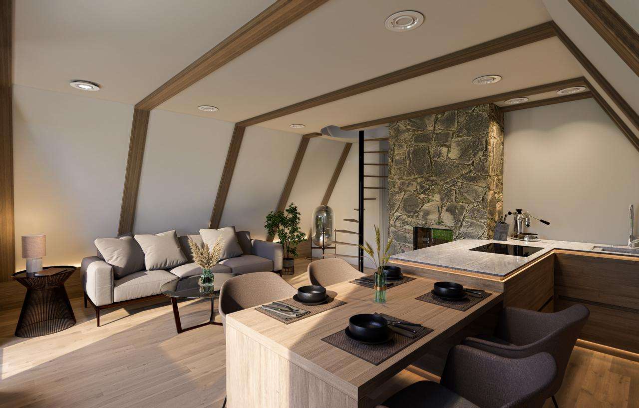 Der Bestand ist derzeit unsaniert, verfügt jedoch über einen besonderen Charakter und eine sehr ansprechende architektonische Ausgangslage. Besonders hervorzuheben ist, dass bereits ein professionelles Innenraumkonzept mit hochwertigen Visualisierungen vorliegt. Diese zeigen, welches gestalterische Potenzial in der Immobilie steckt und wie sich aus dem Bestand ein außergewöhnliches Freizeitobjekt entwickeln lässt.