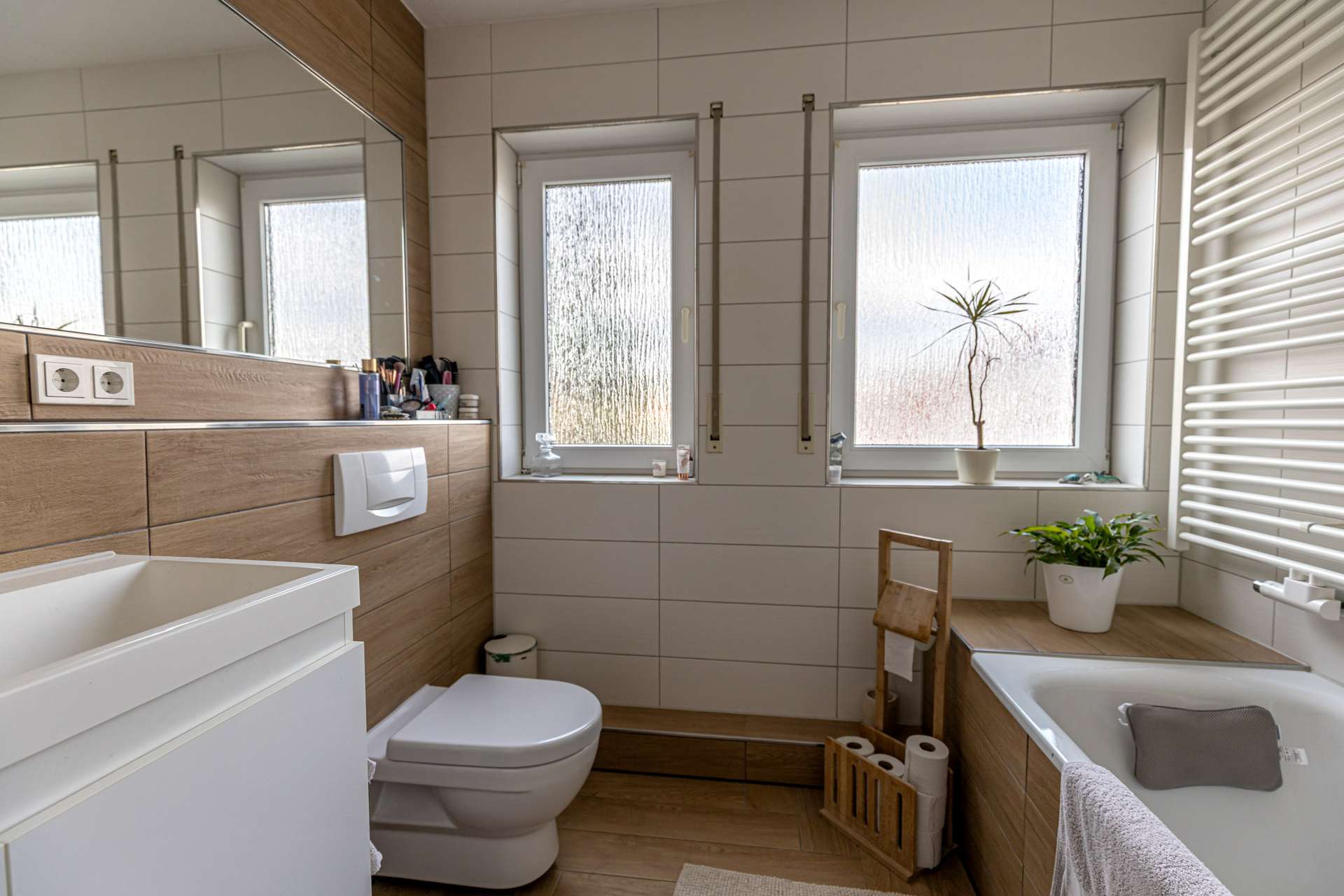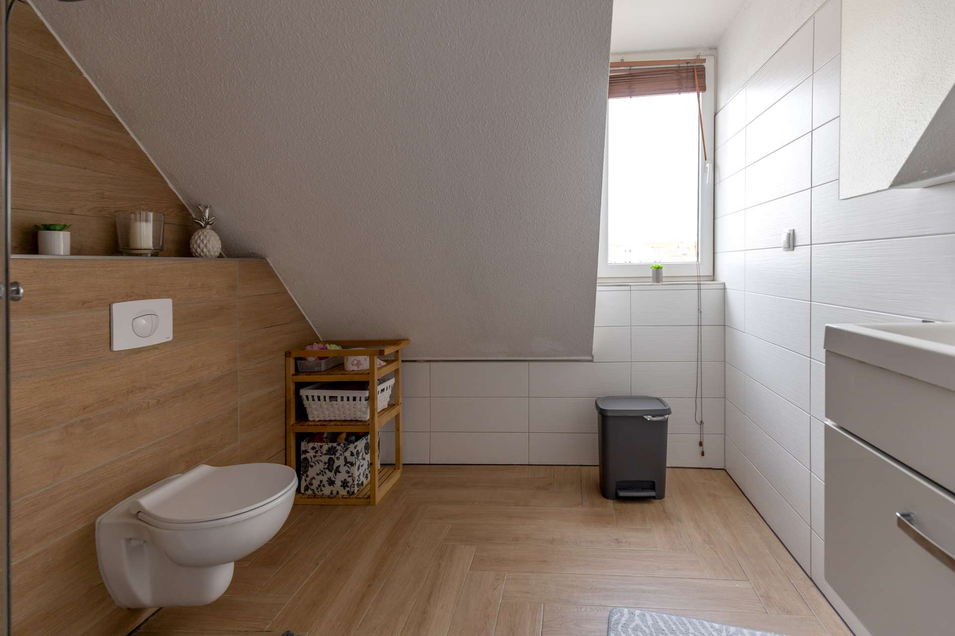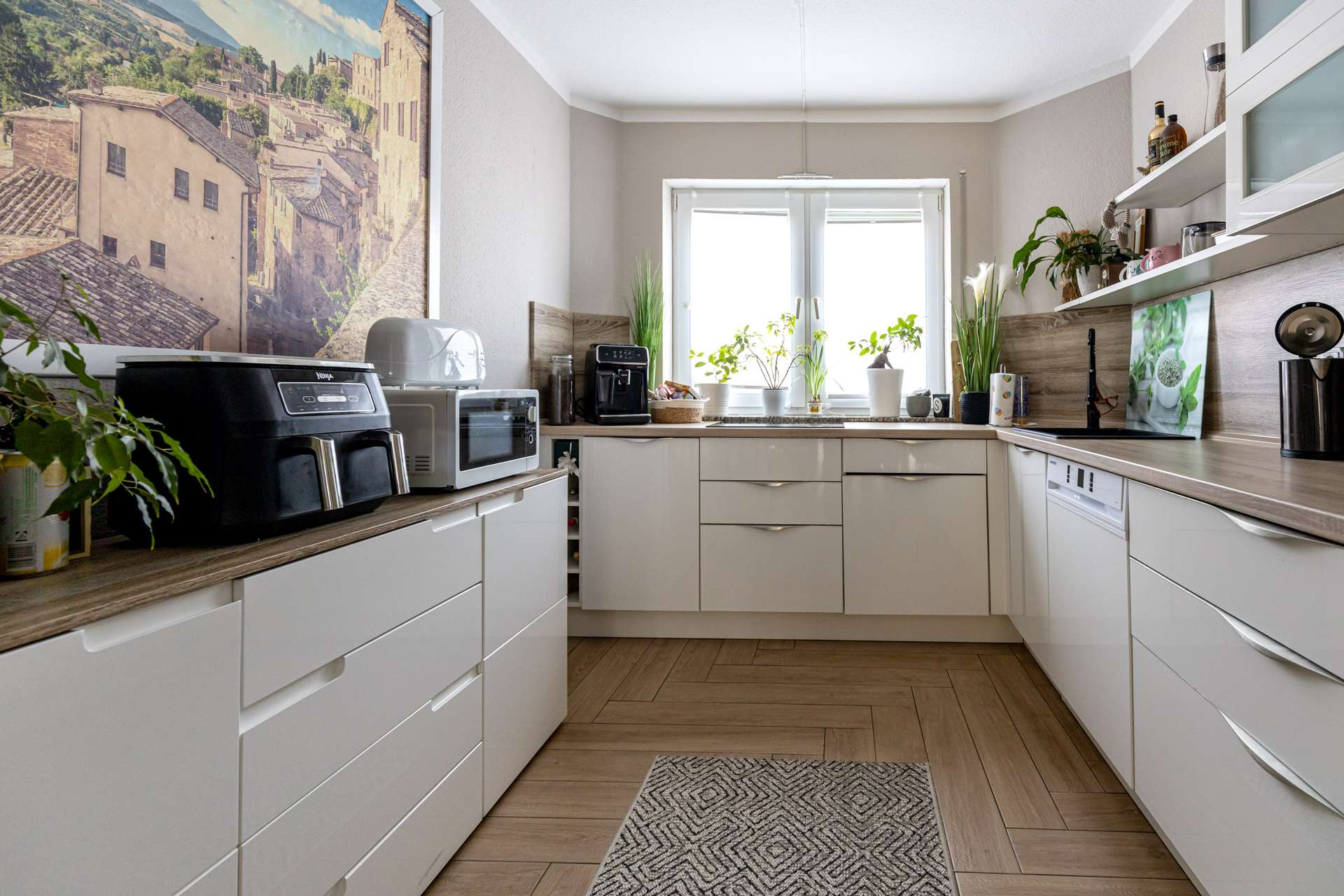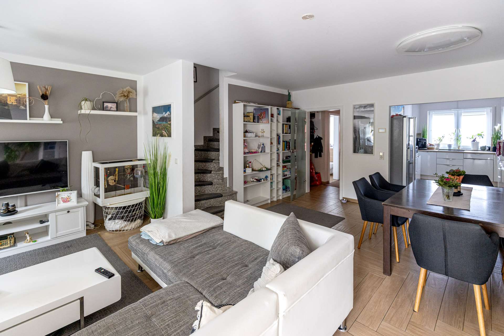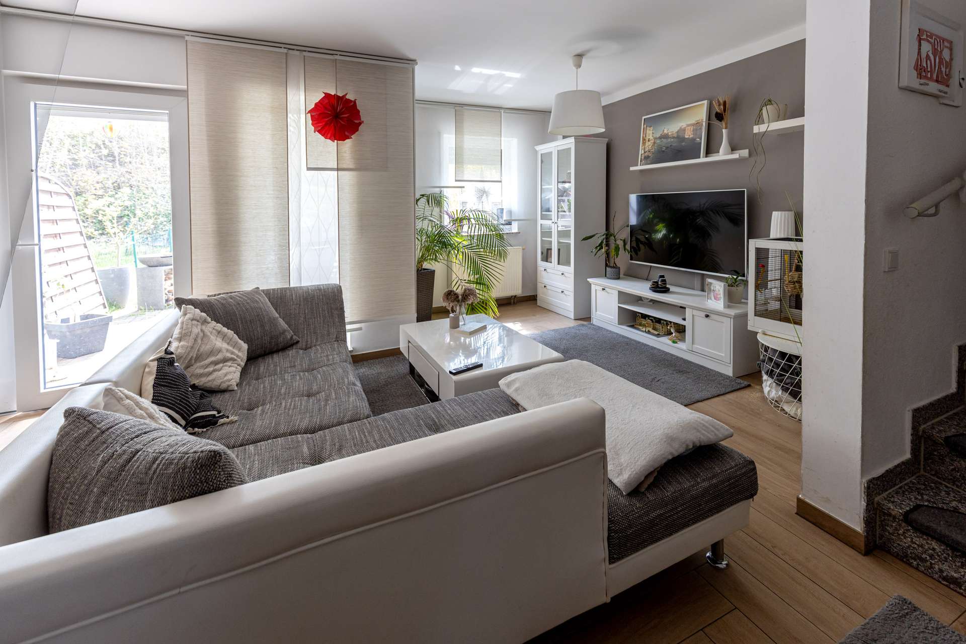 Dieses gepflegte Einfamilienhaus bietet Ihnen auf 150 m² Wohnfläche, verteilt über drei Ebenen, sechs großzügig geschnittene Zimmer sowie einen großen Wohn-/Essbereich mit angrenzender offener Küche. Die helle Küche ist mit modernen Einbaugeräten ausgestattet. Insgesamt stehen Ihnen drei Bäder zur Verfügung - ein Badezimmer mit Wanne und ein Badezimmer mit separater Dusche sowie ein Gäste-WC im Erdgeschoss.