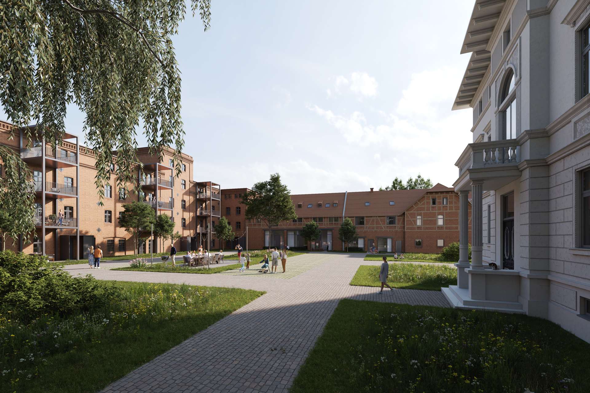 lnsgesamt sind 35 loftartige Wohneinheiten für Familien, Senioren und Singles geplant, die sich um den gemeinsamen lnnenhof in den Gebäudeteilen Villa Deinhardt, Brauereigebäude, Brauereiturm, Scheune und Eishaus anlehnen.