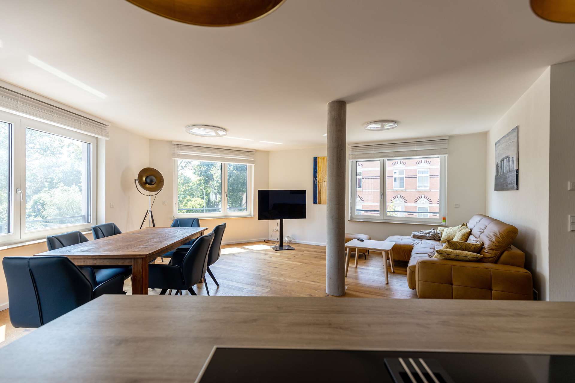 Durch die stilvolle Ausstattung, hochwertige Bodenbeläge und die moderne Architektur entsteht ein harmonisches Wohnumfeld, das perfekt für Familien, Paare oder Berufspendler geeignet ist. Die zentrale Lage mit guter Anbindung an den öffentlichen Nahverkehr und die nahegelegenen Einkaufsmöglichkeiten und Freizeitangebote machen diese Wohnung zu einem idealen Zuhause für all diejenigen, die urbanes Wohnen mit hohem Lebensstandard suchen.